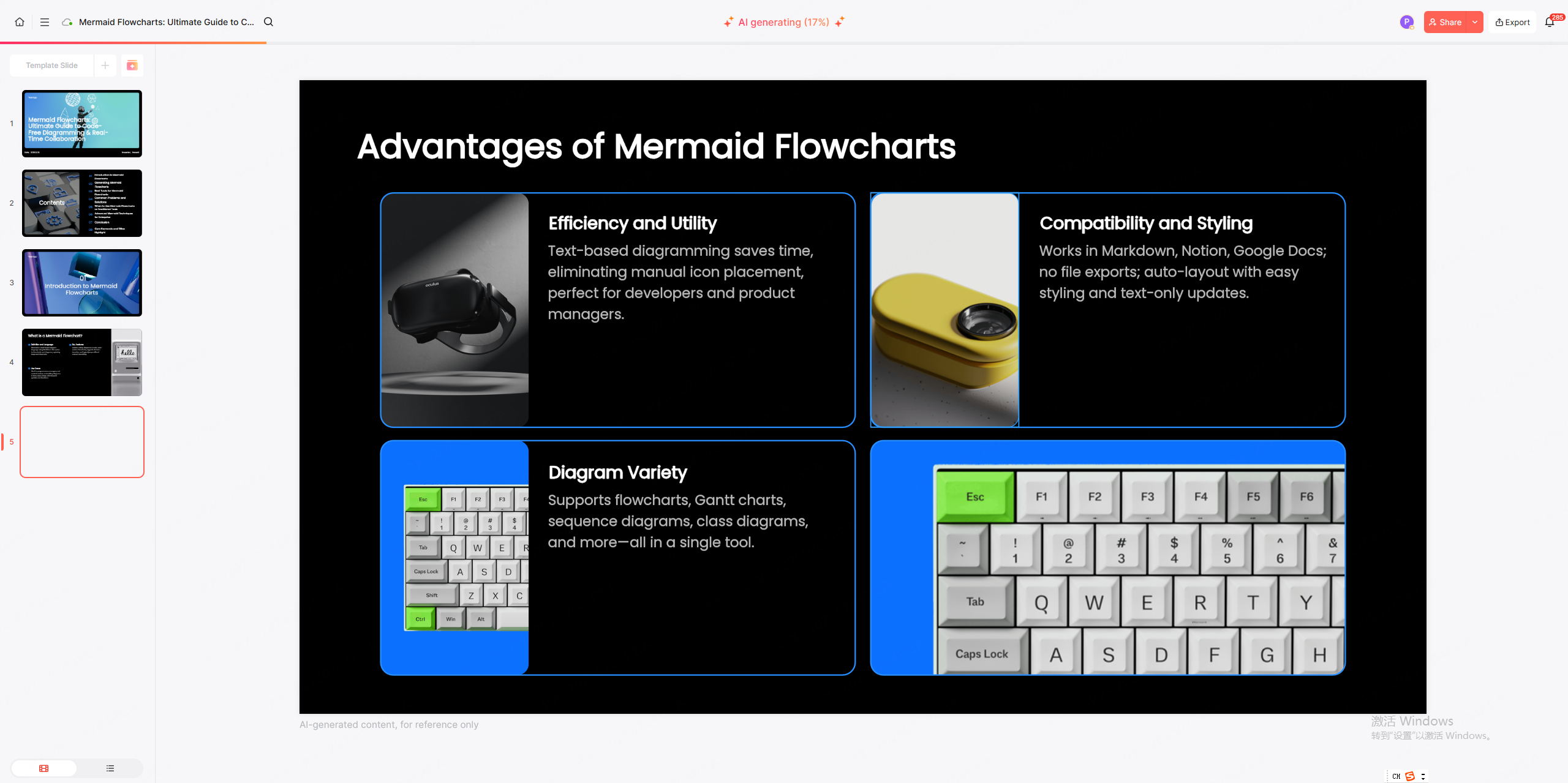 Flexibilität und Einheitlichkeit: Diese Flexibilität ermöglicht es Ihnen, eine einzigartige Präsentation zu schaffen, die Ihre Geschäftsidentität widerspiegelt. KI-Tools helfen sogar dabei, Markenelemente (Logos, Unternehmensfarben, Schriftarten) automatisch auf alle Folien anzuwenden und so ein professionelles, einheitliches Erscheinungsbild zu gewährleisten.