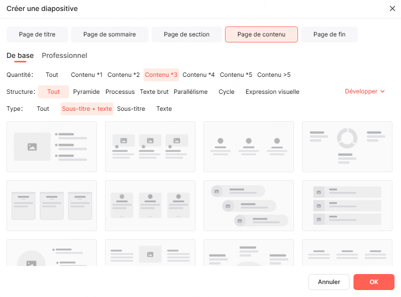 - Action dans Presenti : Utilisez la fonction "Créer aver modèle".