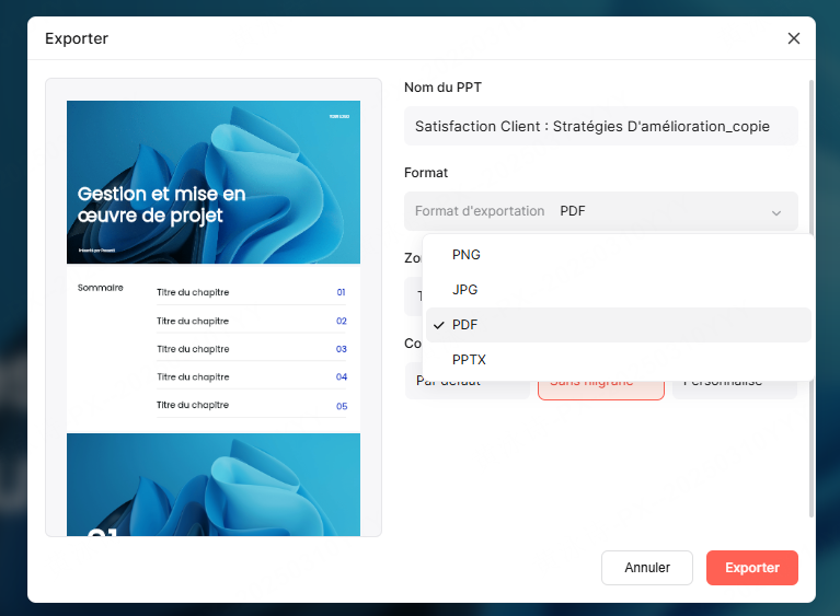 Exportez votre fichier. Grâce au temps gagné sur la mise en forme, vous pouvez maintenant vous consacrer à l'essentiel : répéter votre discours et peaufiner votre storytelling.